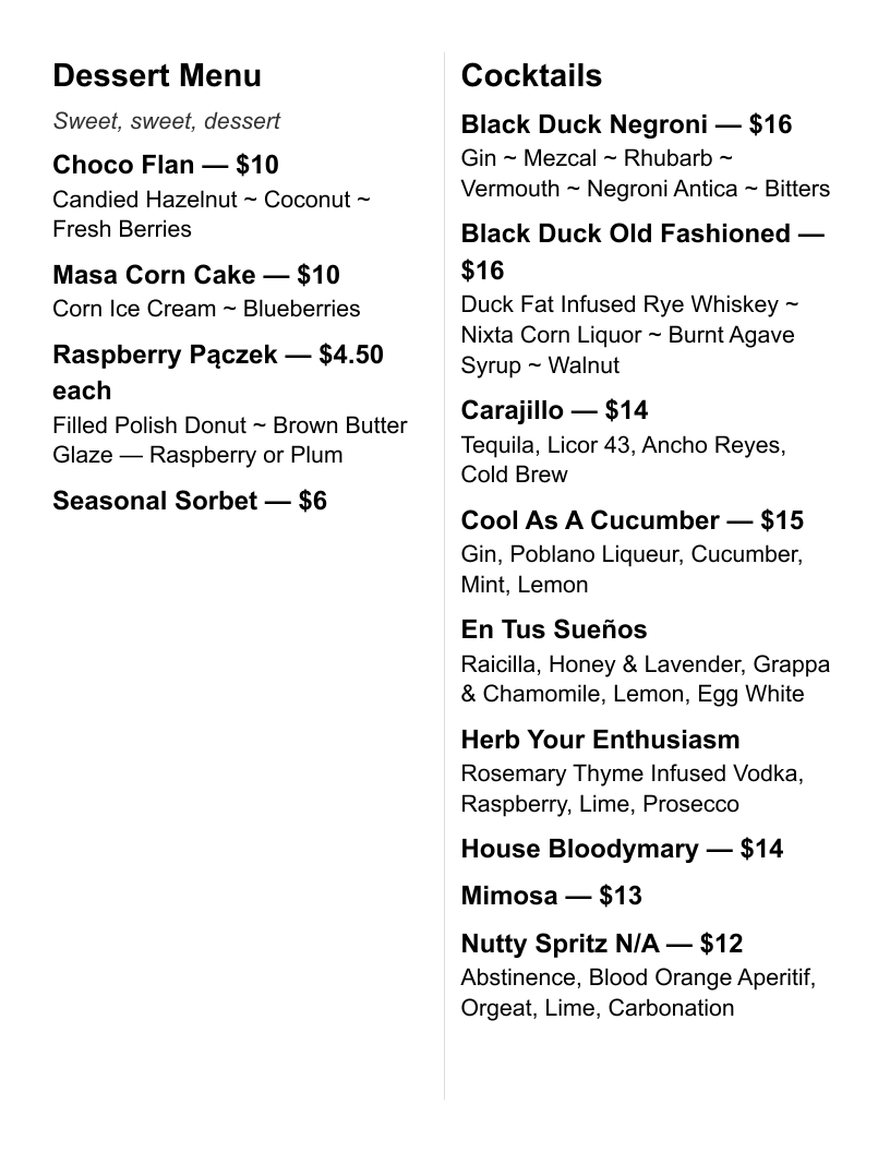 Duck Fat Infused Rye Whiskey ~ Nixta Corn Liquor ~ Burnt Agave Syrup ~ Walnut