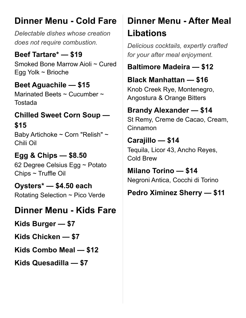 Gin ~ Mezcal ~ Rhubarb ~ Vermouth ~ Negroni Antica ~ Bitters